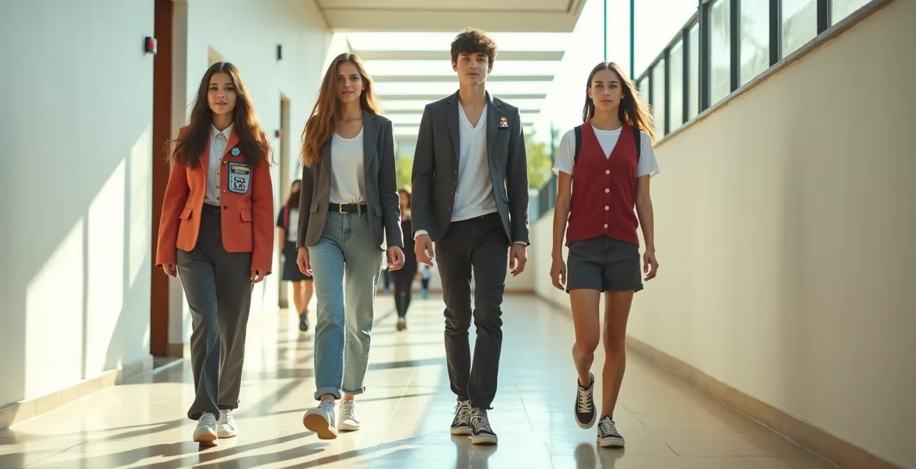 Habitualmente, los consejos se centran en soluciones superficiales como «usa accesorios discretos» o se refugian en un autoritarismo de «las reglas son las reglas». Se habla de tendencias pasajeras como los pantalones cargo o los tops de estilo Y2K, pero rara vez se aborda el núcleo del conflicto: la profunda necesidad de un joven de forjar su propia identidad. Se asume que la autoexpresión y el cumplimiento de un código de vestimenta son fuerzas opuestas destinadas a chocar.