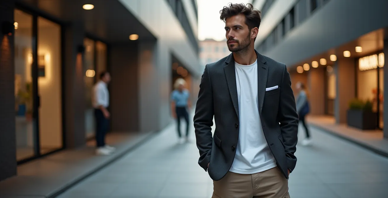 El problema es que este enfoque es superficial. Acumular logos de Gucci o Balenciaga no te garantiza un look maduro; a menudo, consigue justo lo contrario. La cultura del ‘hype’ se basa en la novedad y la ostentación, valores que chocan con la sofisticación y la confianza que se esperan de un hombre en esta etapa de su vida. La verdadera habilidad no reside en qué compras, sino en cómo lo combinas y, sobre todo, en dónde lo llevas. Se trata de evolucionar tu relación con la moda, pasando de ser un mero consumidor de tendencias a un arquitecto de tu propio estilo.